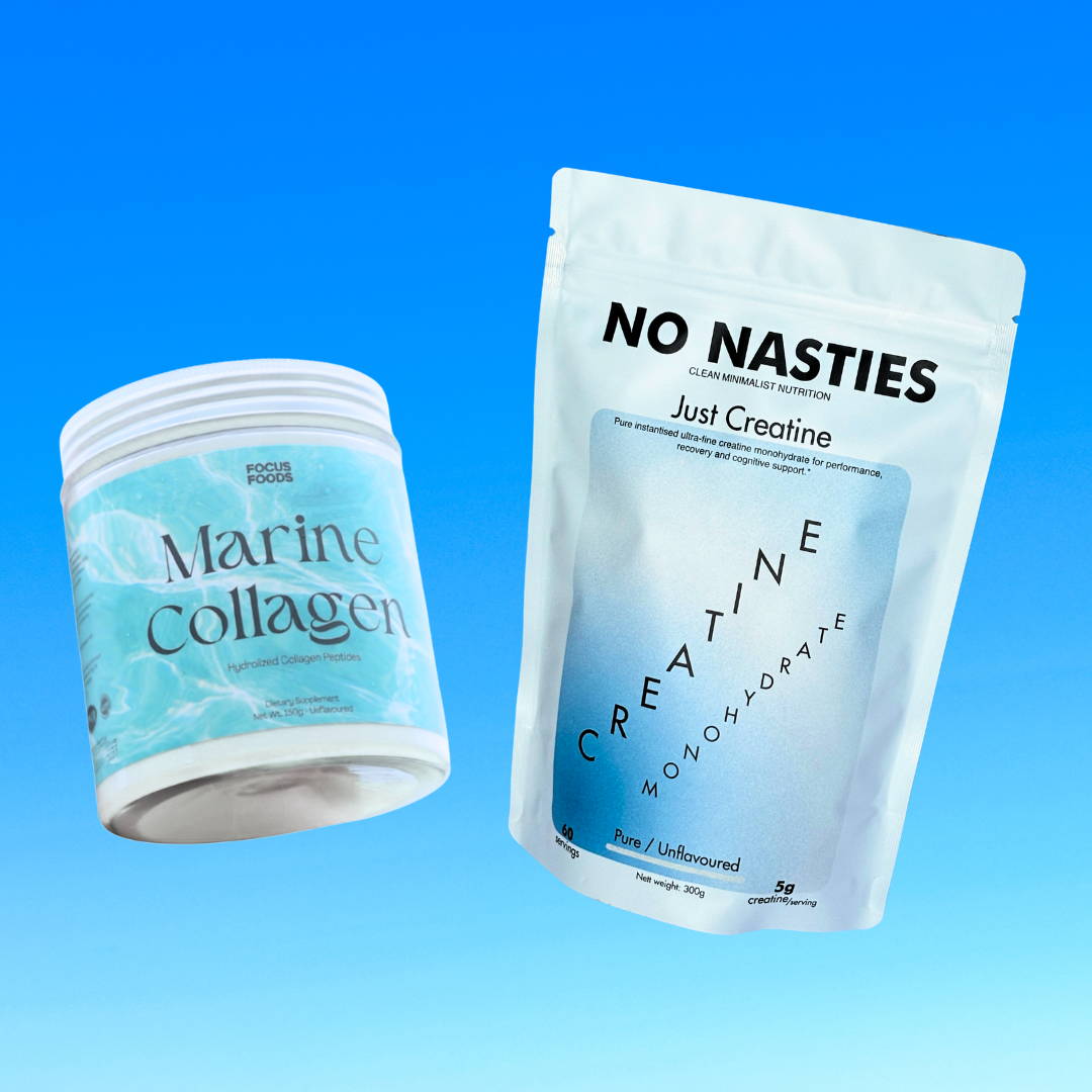 Both products can be taken any time of the day. However, many find it beneficial to take them in the morning to help boost energy (from Creatine) and boost protein (from Marine Collagen). Both are also unflavoured so you can add them together to water or any of your favourite beverages.